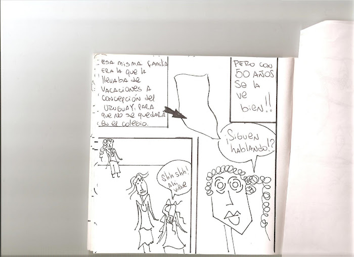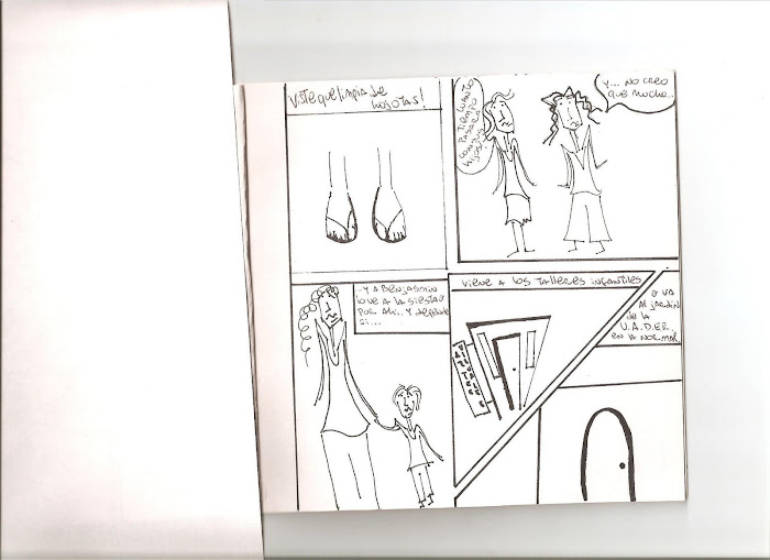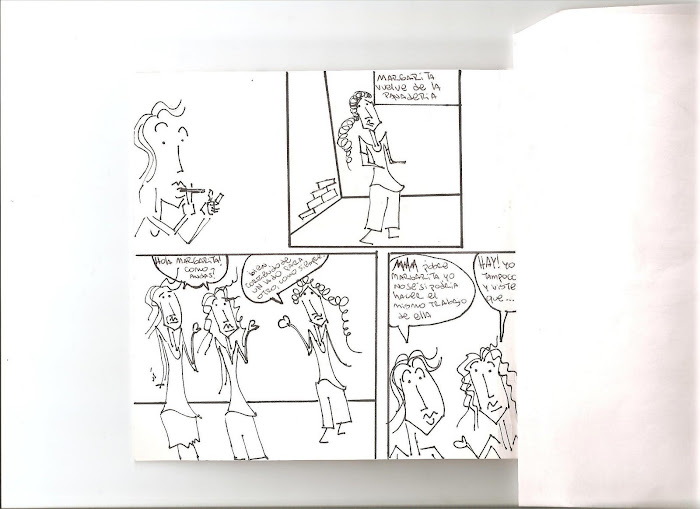 les comento sobre el comic...se trata d dos mujeres q se encuentran en el pasillo d la facu y se ponen a hablar y pasa margarita y se saludan y cuando s va se ponen a hablar d ella y comentan un poco su vida...y el concepto....lo escribo en la proxima...